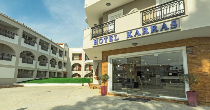 Karras este o proprietate de 4 stele care se află în Laganas (Zakynthos), la o distanță de 350 m de plaja Laganas și oferă piscină în aer liber, cu șezlonguri și umbrele de soare, precum și un centru spa care asigură servicii pentru un sejur extrem de relaxant. Facilitățile de la Karras includ și sală de fitness. Pentru petrecerea timpului liber oaspeții au la dispoziție activități de agrement pe timpul zilei și programe de divertisment seara. Proprietatea are, de asemenea, servicii de recepție cu program non - stop și închirieri auto. Se oferă acces gratuit la internet Wi-fi în spațiile publice. Parcarea este disponibilă la proprietate gratuit.