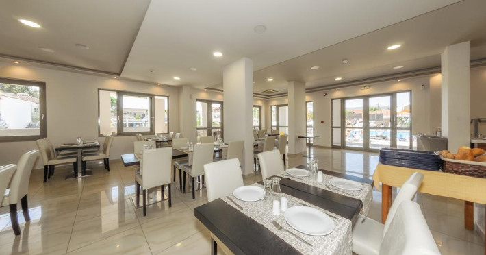 La Karras oaspeții au la dispoziție un restaurant care servește mâncare în stil bufet. Bucătăria mediteraneană de la Karras propune preparate delicioase care satisfac gusturi diverse. Masa poate fi servită atât în interior, cît si în aer liber, pe terasă, în funcție de vreme. Oaspeţii pot avea diverse băuturi răcoritoare sau alcoolice la bar.