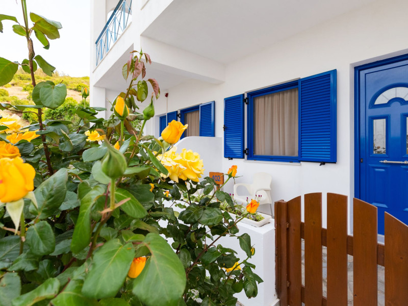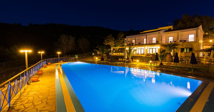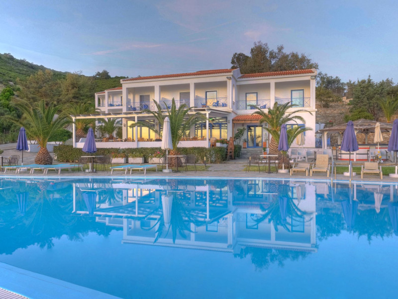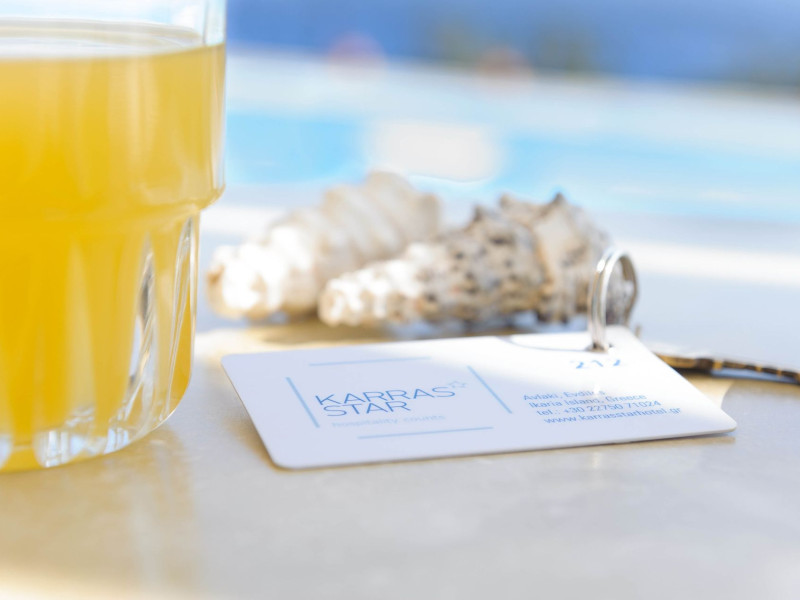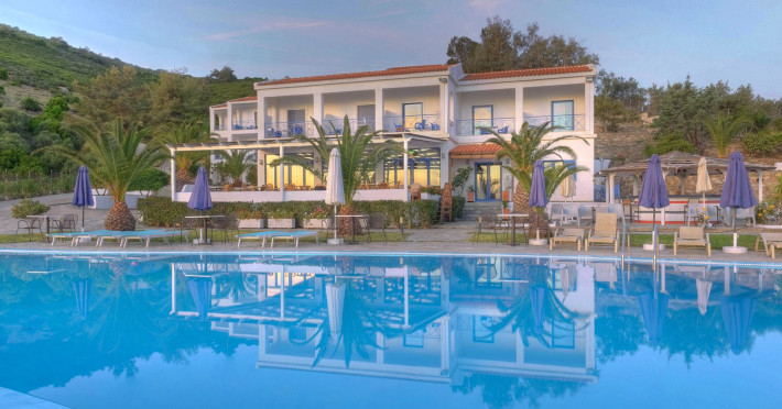 Karras' Star is located on the main road of Avlaki village, 7 km from Evdilos port and between the exotic beaches of Kampos and Messakti. It consists of four buildings, containing 37 rooms, refurbished, spacious and comfortable. They are amphitheatrically clustered, giving unlimited view to the sea. Decor is luxurious and all modern comforts will make for an unforgettable stay on the island.