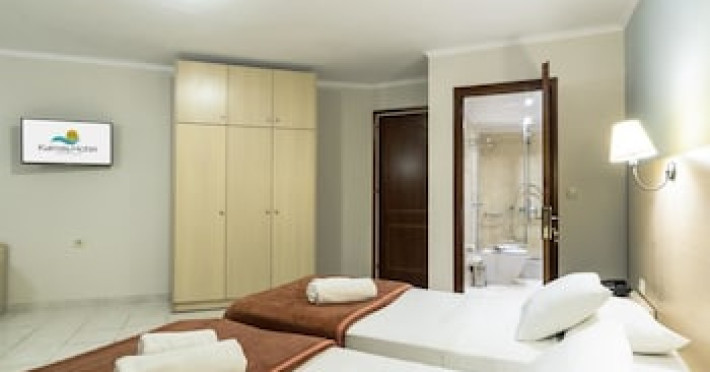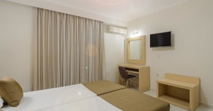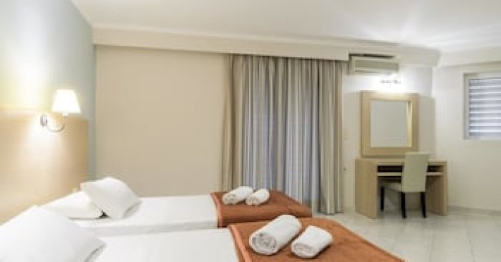 Near Laganas Beach. With a stay at Karras Hotel in Zakynthos, youll be near the beach, just a 1-minute walk from National Marine Park of Zakynthos and 7 minutes by foot from Kalamaki Beach. This 4-star hotel is 0.4 mi (0.6 km) from Laganas Beach and 4.6 mi (7.5 km) from Zakynthos Ferry Terminal. Make yourself at home in one of the 62 air-conditioned rooms featuring refrigerators and LED televisions. Rooms have private balconies. Wireless Internet access (surcharge) keeps you connected, and cable programming is available for your entertainment. Bathrooms have bathtubs or showers and hair dryers. You can enjoy a meal at the restaurant serving the guests of Karras Hotel, or stop in at the snack bar/deli. Unwind at the end of the day with a drink at the bar/lounge or the poolside bar. A complimentary buffet breakfast is served daily from 7:30 AM to 10 AM. Be sure to enjoy recreational amenities, including an outdoor pool, a sauna, and a fitness center. Additional features at this hotel include complimentary wireless Internet access, gift shops/newsstands, and a television in a common area.Datorita dinamicitatii domeniului disponibilitatea ofertelor se modifica de la un moment la altul. De aceea ofertele sunt valabile in limita locurilor disponibile. Agentia nu este responsabila pentru eventualele neconcordante care pot aparea intre informatiile privind tarifele si alte detalii din site si informatiile primite in agentie. In aceste cazuri vor avea prioritate, intotdeauna, informatiile primite in agentie.