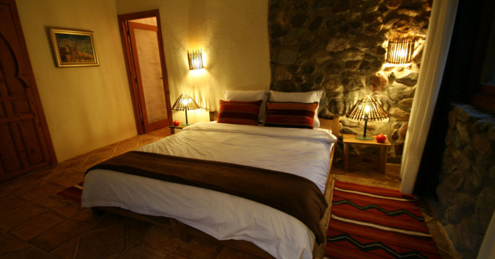 Located near Ouirgane in the picturesque Azzaden River Valley facing the High Atlas Mountains and Takerkhort Wildlife Reserve, this lodge is an ideal base for nature lovers and outdoor enthusiasts. Eight spacious junior suites each sleep up to 4 people in king size beds or twins with extra bed and sofa bed. This charming property enjoys a stunning design, beautifully respecting the traditions of the area. The stone-wall guest rooms offer an elegant setting in which to unwind. All rooms include telescopes for star-gazing, binoculars for bird-watching, satellite TV with DVD, log fires, bath robes and Moroccan slippers. Guests can enjoy a leisurely swim in the infinity pool which overlooks the river, or relax on the lawn and revel at the splendid beauty of the surroundings. Terraced orchards are filled with plum, peach, apple and olive trees. A restaurant offers indoor or outdoor dining with Moroccan and international menus. Sitting at the gateway to Toubkal National Park, the region is a walker's paradise: several day walks or overnight hikes are possible. Excursions by car can be made to the Ourika Valley, Agafay Desert, Tin Mal Mosque and the Ouirgane Valley. Mountain biking, horse-riding and spa are available locally. Access is via a scenic 3 km dirt track from Marigha. There is on-site car parking. This establishment allows well-behaved pets.Located near Ouirgane in the picturesque Azzaden River Valley facing the High Atlas Mountains and Takerkhort Wildlife Reserve, this lodge is an ideal base for nature lovers and outdoor enthusiasts. Eight spacious junior suites each sleep up to 4 people in king size beds or twins with extra bed and sofa bed. This charming property enjoys a stunning design, beautifully respecting the traditions of the area. The stone-wall guest rooms offer an elegant setting in which to unwind. All rooms include telescopes for star-gazing, binoculars for bird-watching, satellite TV with DVD, log fires, bath robes and Moroccan slippers. Guests can enjoy a leisurely swim in the infinity pool which overlooks the river, or relax on the lawn and revel at the splendid beauty of the surroundings. Terraced orchards are filled with plum, peach, apple and olive trees. A restaurant offers indoor or outdoor dining with Moroccan and international menus. Sitting at the gateway to Toubkal National Park, the region is a walker's paradise: several day walks or overnight hikes are possible. Excursions by car can be made to the Ourika Valley, Agafay Desert, Tin Mal Mosque and the Ouirgane Valley. Mountain biking, horse-riding and spa are available locally. Access is via a scenic 3 km dirt track from Marigha. There is on-site car parking. This establishment allows well-behaved pets.
