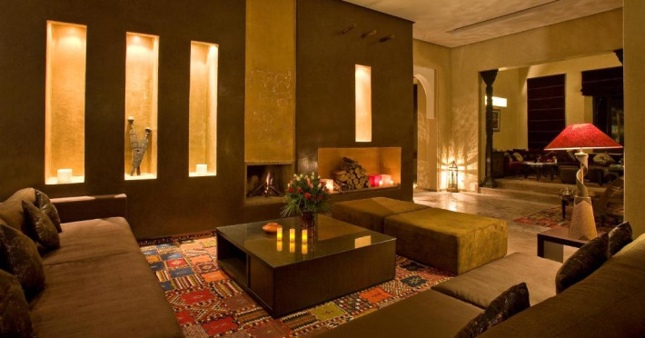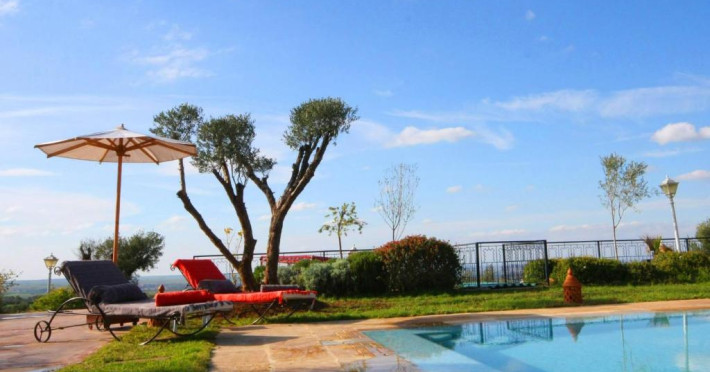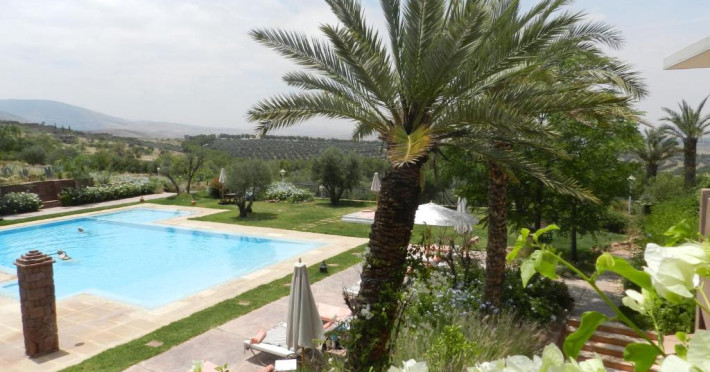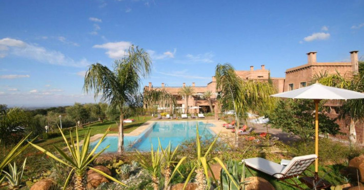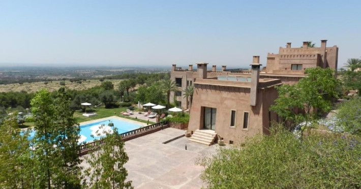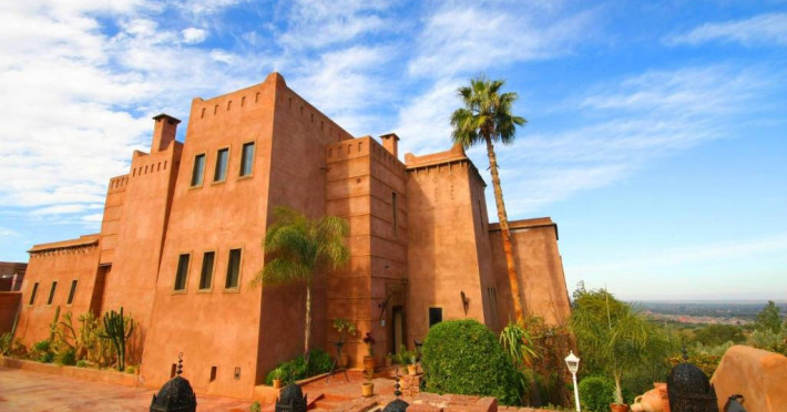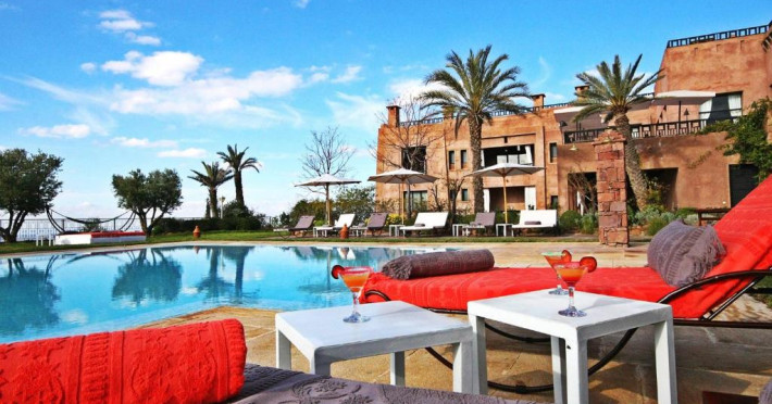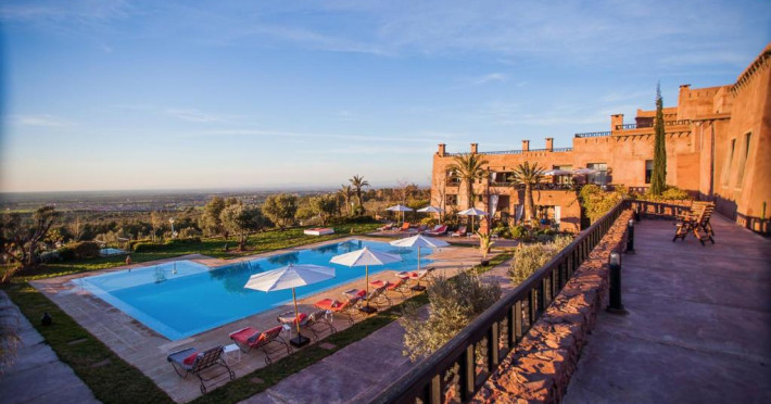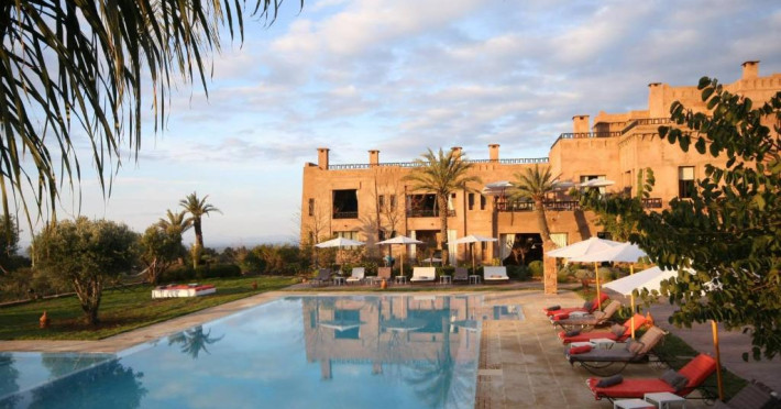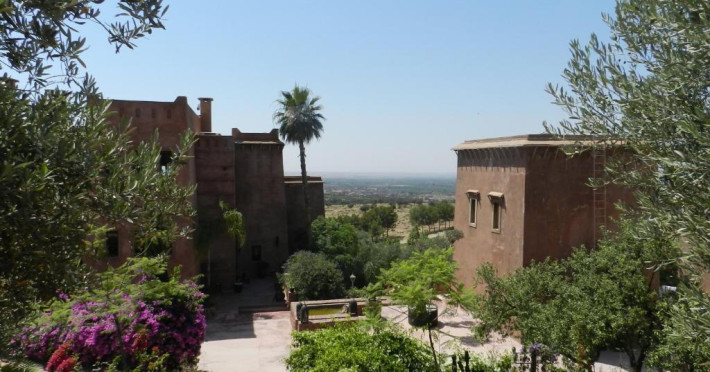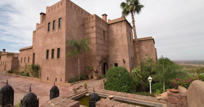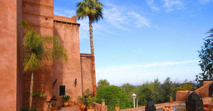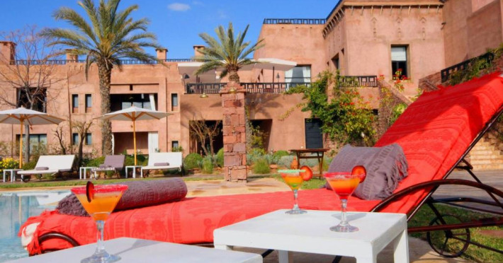 Kasbah Agounsane is a luxurious guest house located in the Ourika Valley, a 30-minute drive from Marrakech. Its furnished lounge/terrace sits in the courtyard with its lush gardens and swimming pool.