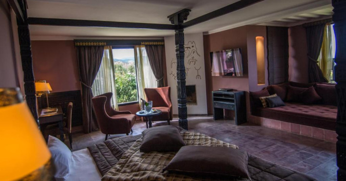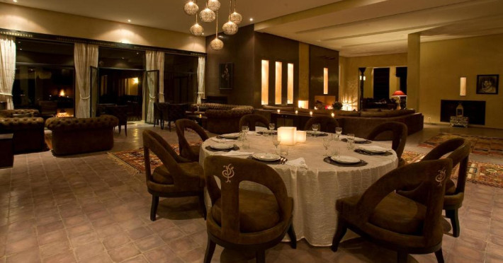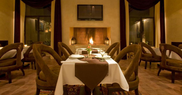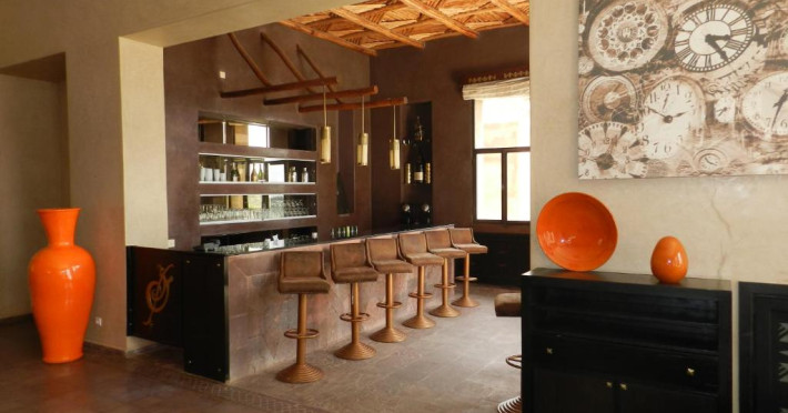 The elegant bar and restaurant is open for guests of Kasbah Agounsane. You can enjoy a drink or meal on the terrace under the stars and overlooking the valley.