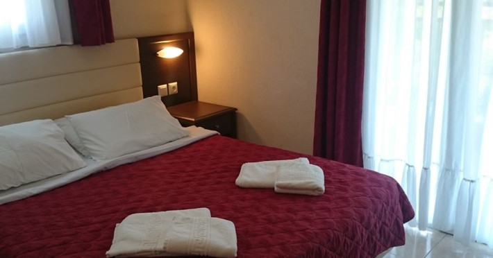 Kasandra Bay Hotel 2*-este situat la 600 m de plaja si 700 m de satul Kriopigi in Kassandra, Halkidiki.Descriere camere:Camerele sunt comfortabile cu paturi duble sau doua paturi de o persoana,mini frigider,tv si balcon,seif ,uscator de par disponibil la cerere de la receptie.Facilitati Hotel:hotelul are piscina exterioara cu umbrele si sezlonguri,parcare,