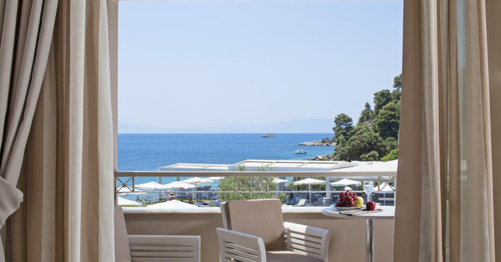 Kassandra Bay Resort & Spa este o proprietate de 5 stele care se află pe malul mării, în Vasilias Bay (Skiathos), și oferă 2 piscine în aer liber cu șezlonguri și umbrele de soare, precum și centru spa/wellness care asigură servicii pentru un sejur extrem de relaxant. Facilitățile de la Kassandra Bay Resort & Spa includ și sală de fitness. Pentru petrecerea timpului liber oaspeții au la dispoziție activități de agrement pe timpul zilei și programe de divertisment seara. Proprietatea are, de asemenea, servicii de recepție cu program non - stop, concierge și închirieri auto. Se oferă acces gratuit la internet Wi-fi în spațiile publice. Parcarea este disponibilă la proprietate gratuit.