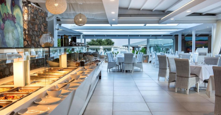 La Kassandra Bay Resort & Spa oaspeții au la dispoziție 2 restaurante unde pot savura mâncăruri delicioase, în stil bufet sau à la carte. Bucătăria mediteraneană de la Kassandra Bay Resort & Spa propune preparate delicioase care satisfac gusturi diverse. Masa poate fi servită atât în interior, cît si în aer liber, pe terasă, în funcție de vreme. 2 baruri, dintre care unul la piscină, sunt disponibile cu o ofertă variată de băuturi răcoritoare și alcoolice. În cadrul proprietății există și un snack bar care servește băuturi și gustări. Pentru cei cu anumite nevoi de nutriție, Kassandra Bay Resort & Spa oferă meniuri pentru diete speciale.