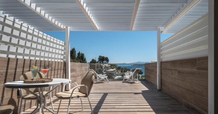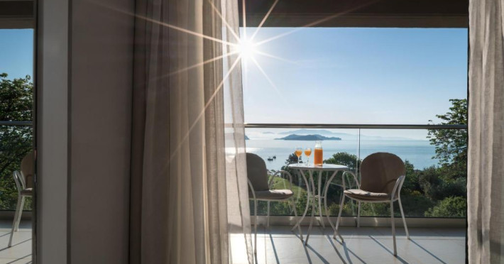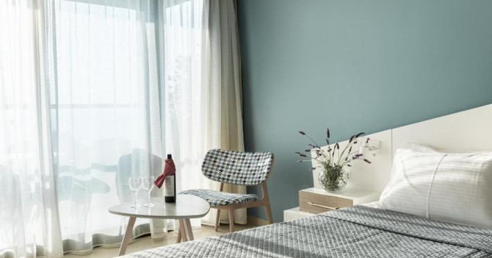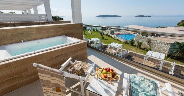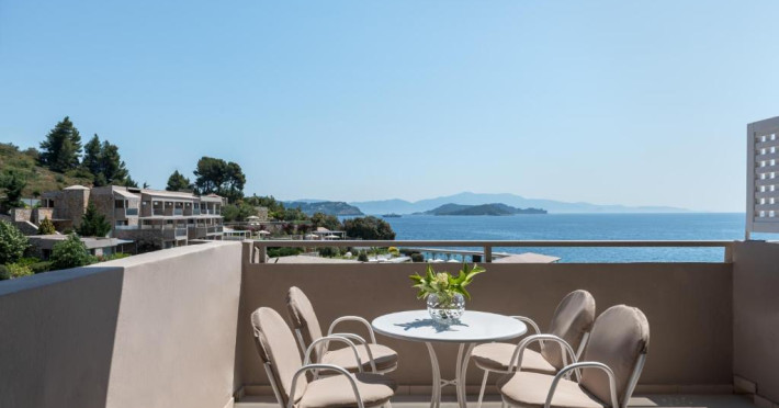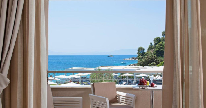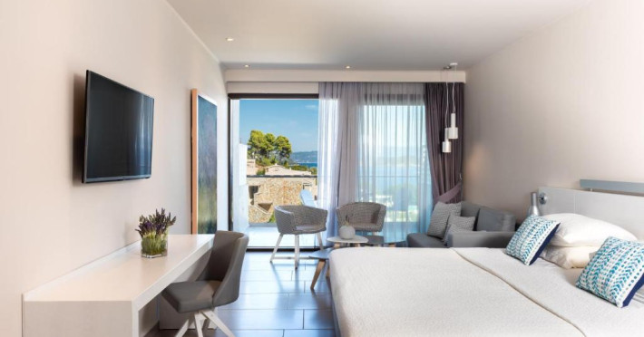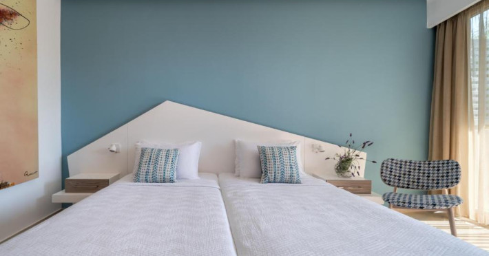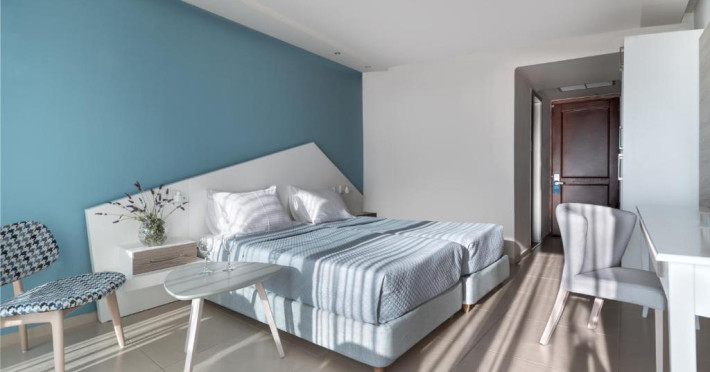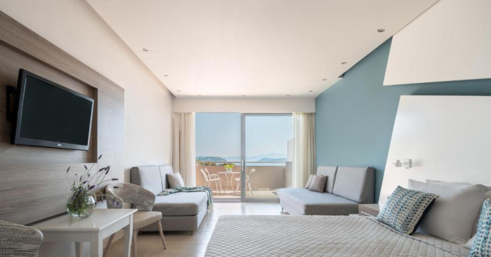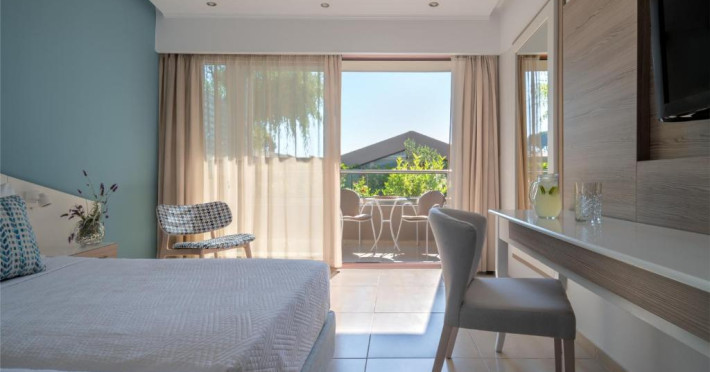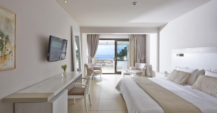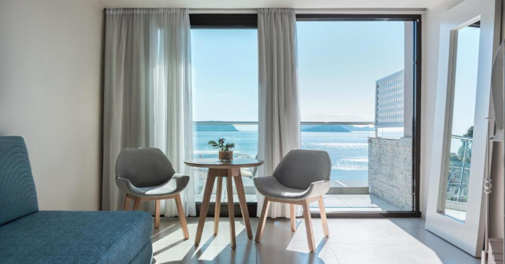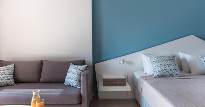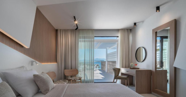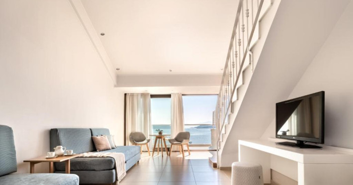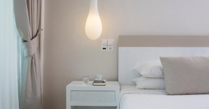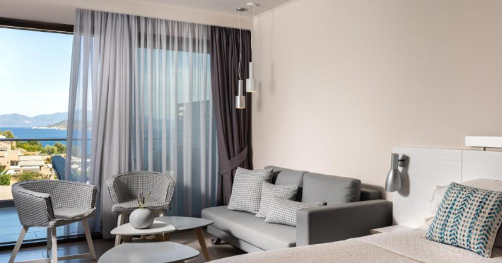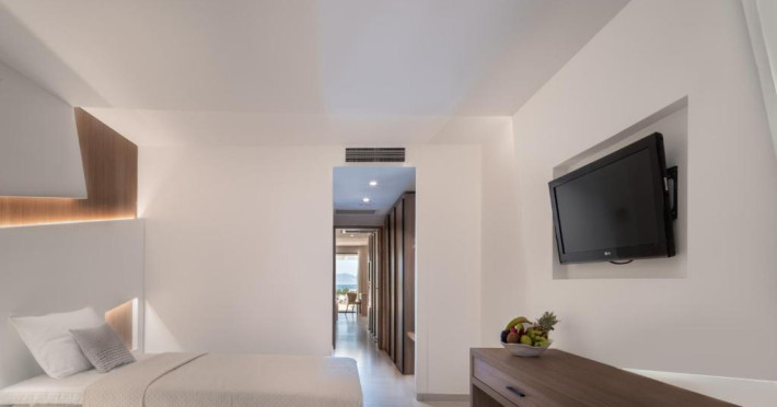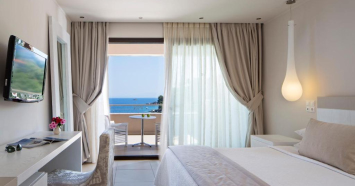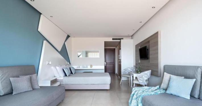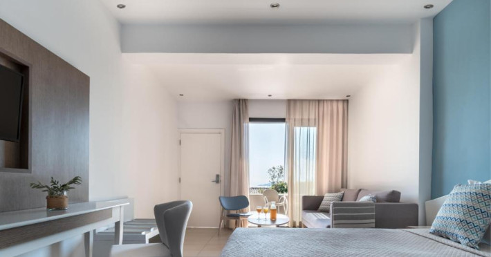Camerele și suitele decorate modern au balcon sau terasă mobilată cu vedere la Marea Egee, la piscină sau la grădini. Fiecare unitate decorată in culori pastel și are TV LCD cu canale prin satelit, WiFi gratuit și aerate. Băile moderne sunt dotate cu articole de toaletă gratuite și papuci. Unele unități beneficiază de o zonă privată sau de cadă cu hidromasaj.