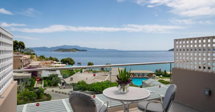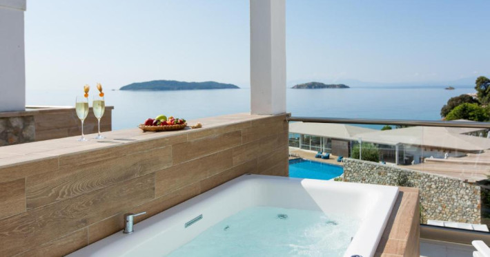 Kassandra Bay Resort, Suites & Spa se află la numai 3 km de orașul principal, Skiathos și la 4 km de Aeroportul Național din Skiathos. Celebra plajă Koukounaries și barurile sale se află la 10 km. Este pusă la dispoziție o parcare gratuită in aer liber.