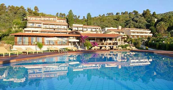 Hotelul se afla pe plaja Megalos Vassilias,in golful Vasilias, cunoscuta si sub numele de „Plaja Regelui”, denumire data de faptul ca, in locul in care se afla astazi hotelul, exista in trecut unul dintre palatele regelui Filip al Macedoniei. Inconjurat de maslini, gradini superbe, cu camere decorate modern, hotelul este potrivit, atat pentru cupluri, cat si pentru familii. Are acces direct la plaja. Daca va doriti un sejur de rasfat acesta este locul perfect. Centrul orasului Skiathos se afla la doar 3 km de hotel, iar aeroportul la 4 km. In fata hotelului exista statie de autobuzLocalizare