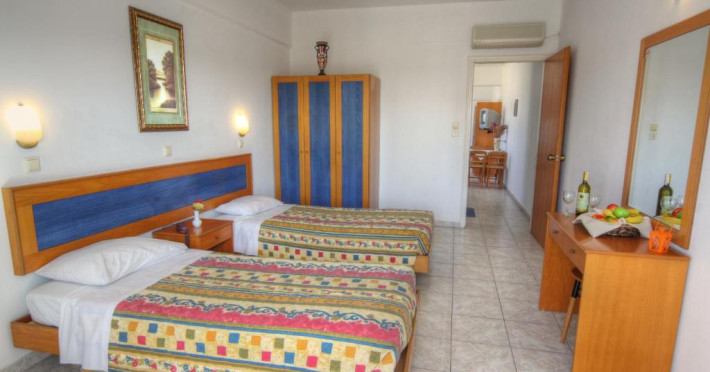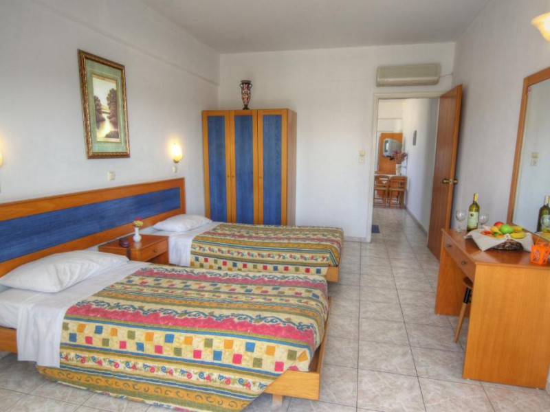 Cazare confortabilă: Hotelul Kassandra din Ialyssos oferă camere de familie cu un dormitor, o baie și un living. Fiecare unitate include aer condiționat, chicinetă, balcon și vedere la grădină.