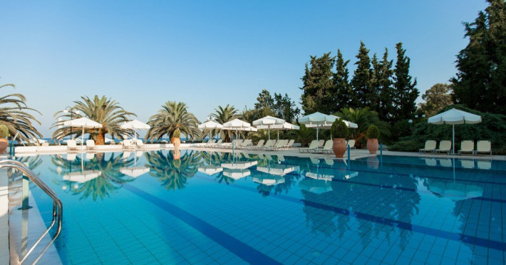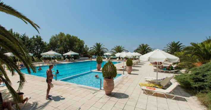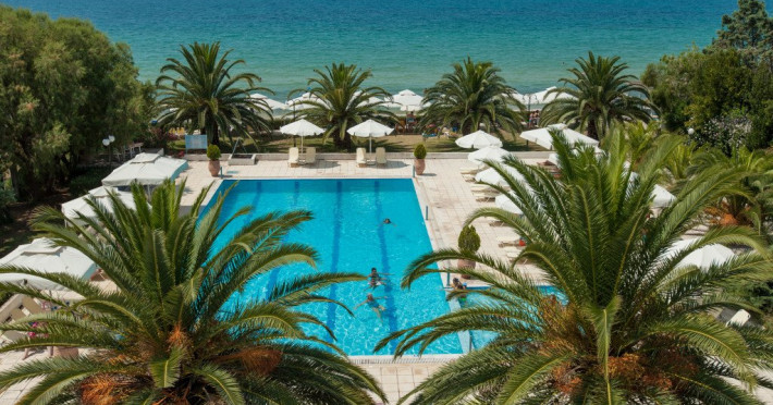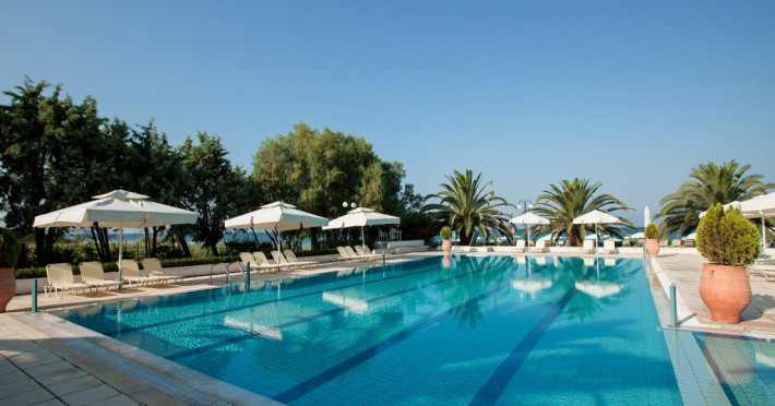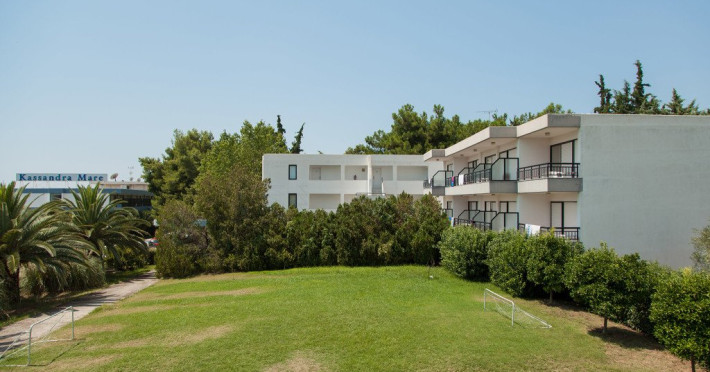 Locatie: Hotelul Kassandra Mare & Spa ofera servicii calitative la preturi excelente.Unitatea de cazare se afla in Nea Moudania/Nea Potidea, pe malul marii (plaja cu nisip si pietre/pietricele) la drumul principal, inconjurat de o padurere de pini si maslini.