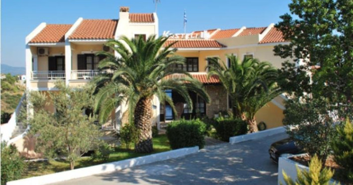 Descriere: Hotelul Kasteli este situat la marginea statiunii Pythagorion, la 500 m de centrul statiunii si la 600 m de plaja Remataki. Hotelul este construit ca un amfiteatru pe dealul de la intrarea in statiune si este o proprietate de familie cu o frumoasa vedere asupra Marii Egee.Localizare: Hotelul Kasteli este situat la marginea statiunii Pythagorion, la 1,5 km de aeroport, iar statia de autobuz este langa hotel.Facilitati hotel: piscina in aer liber, pool bar (iulie - august), internet gratuit la receptie, receptie deschisa in anumite intervale orare, parcare.