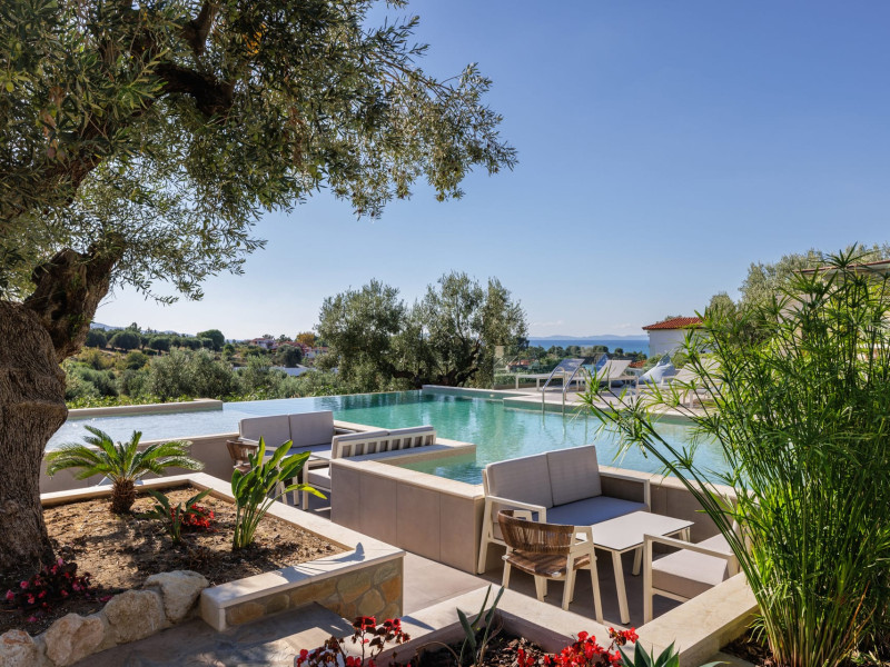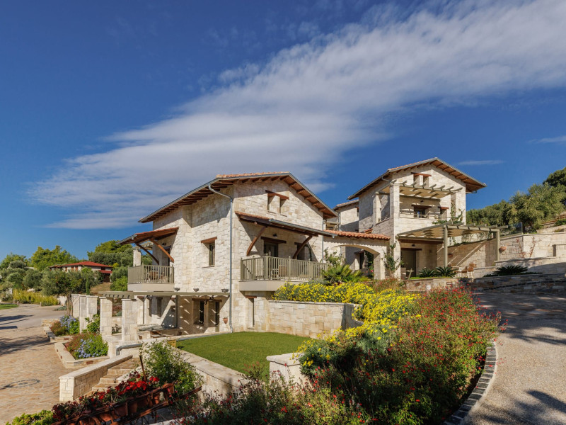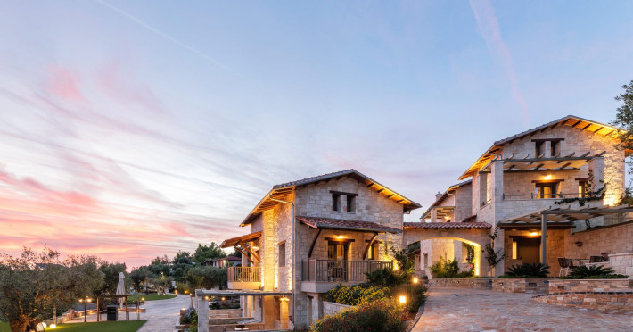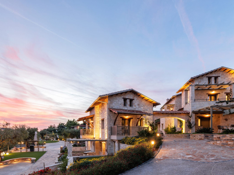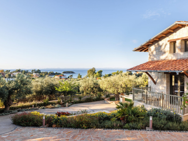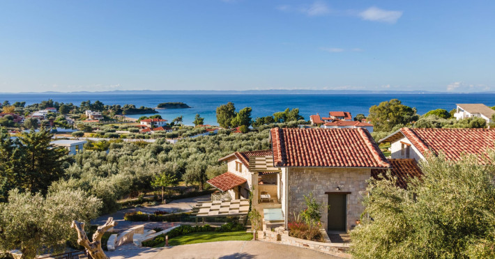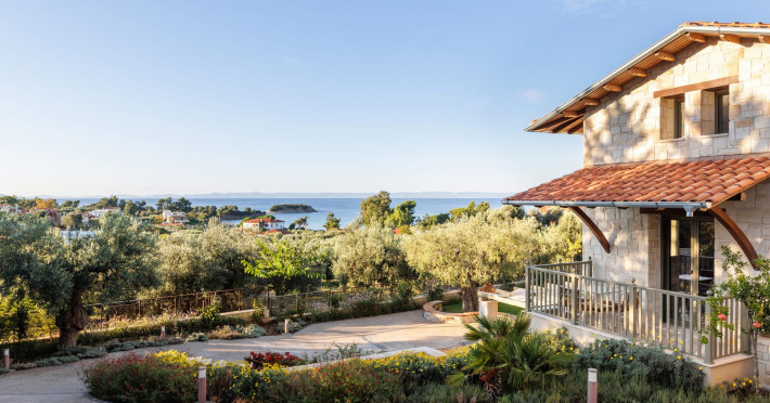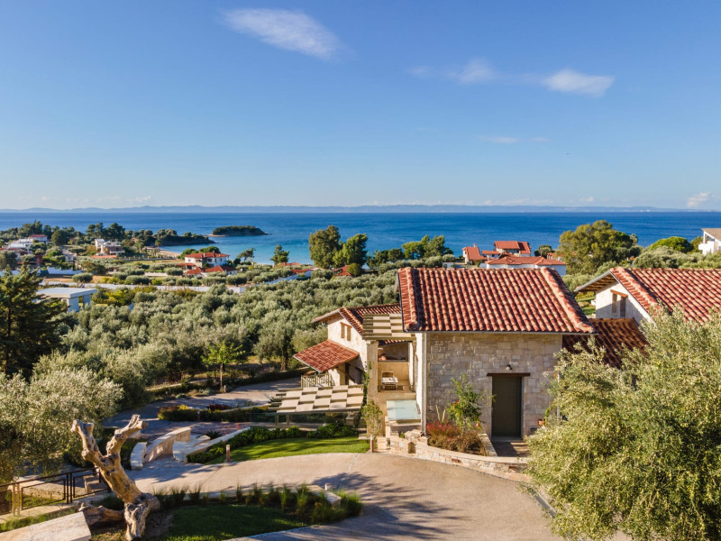Kastri Elia is a complex of 10 sophisticated two-storey suites on the slope of a green hillside, in an area of 4 acres, next to Nikiti. Built amidst century-old olive trees and flower gardens with aromatic plants, they gaze unobstructed at the magnificent view of the deep blue Toroneos Gulf. With wood and stone as the protagonists in their architectural structure, the suites, attentive to every detail, harmonize perfectly with the natural landscape, creating a unique combination of tranquility and rejuvenation in the unpretentious luxury of simplicity.Datorita dinamicitatii domeniului disponibilitatea ofertelor se modifica de la un moment la altul. De aceea ofertele sunt valabile in limita locurilor disponibile. Agentia nu este responsabila pentru eventualele neconcordante care pot aparea intre informatiile privind tarifele si alte detalii din site si informatiile primite in agentie. In aceste cazuri vor avea prioritate, intotdeauna, informatiile primite in agentie.