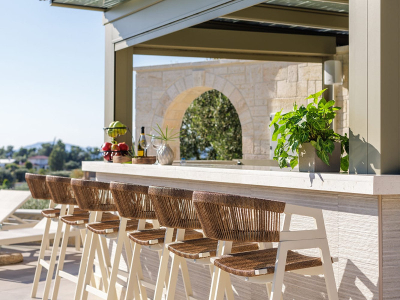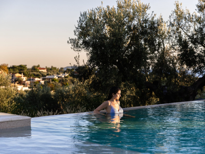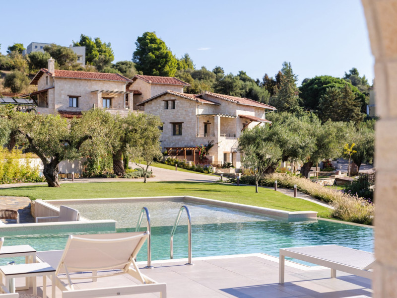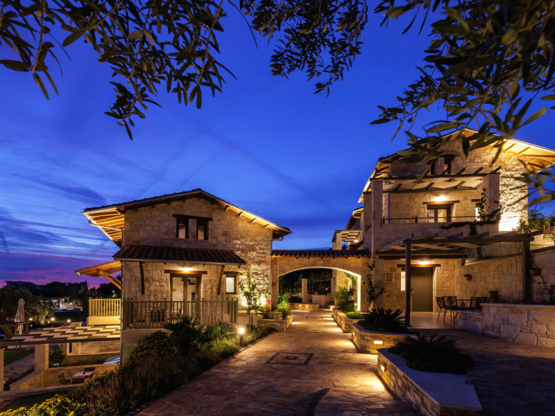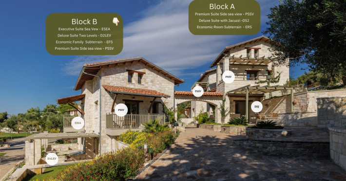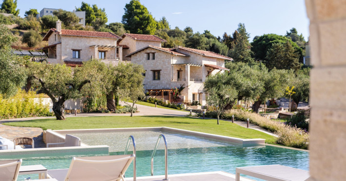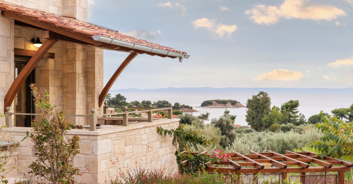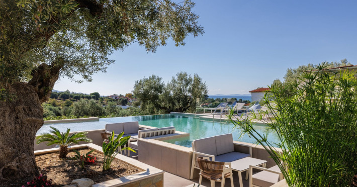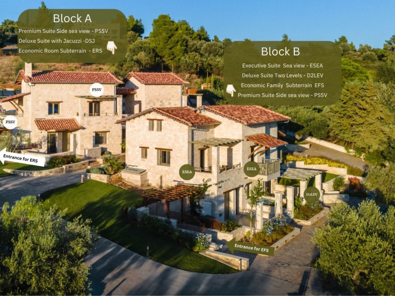 Kastri Elia is a complex of 10 sophisticated two-storey suites on the slope of a green hillside, in an area of 4 acres, next to Nikiti. Built amidst century-old olive trees and flower gardens with aromatic plants, they gaze unobstructed at the magnificent view of the deep blue Toroneos Gulf. With wood and stone as the protagonists in their architectural structure, the suites, attentive to every detail, harmonize perfectly with the natural landscape, creating a unique combination of tranquility and rejuvenation in the unpretentious luxury of simplicity.Datorita dinamicitatii domeniului disponibilitatea ofertelor se modifica de la un moment la altul. De aceea ofertele sunt valabile in limita locurilor disponibile. Agentia nu este responsabila pentru eventualele neconcordante care pot aparea intre informatiile privind tarifele si alte detalii din site si informatiile primite in agentie. In aceste cazuri vor avea prioritate, intotdeauna, informatiile primite in agentie.