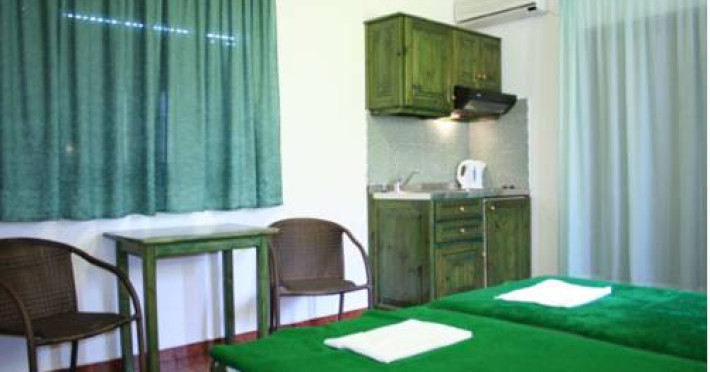 Unele camere au balcon cu vedere la mare sau la piscină. Camerele confortabile de la Kastro Apartments sunt dotate cu pardoseală de gresie/ marmură, aer condiționat, Tv și seif. În camere există baie prevăzută cu foehn. Fiecare cameră dispune de cană-fierbător. Oaspeții au acces gratuit la serviciul Wi-fi în camere. Fiecare unitate de cazare include o chicinetă utilată cu frigider, plită de gătit și ustensile de bucătărie. De asemenea, este disponibilă o zonă de luat masa.