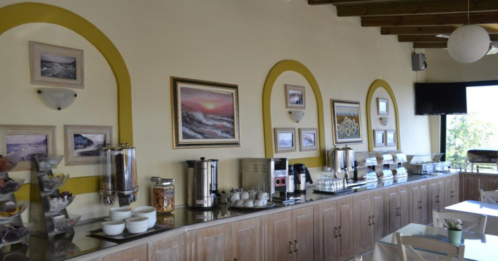 La proprietate există un snack-bar care oferă cafea, băuturi și gustări. Masa poate fi servită atât în interior, cît si în aer liber, pe terasă, în funcție de vreme. Oaspeţii îşi pot pregăti micul dejun şi alte mese şi le pot savura chiar pe balcon.