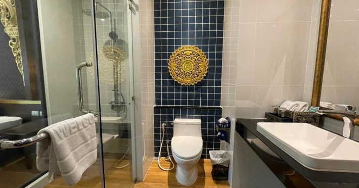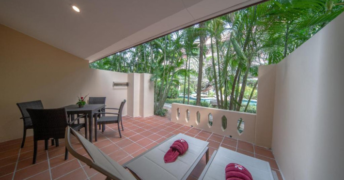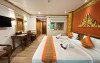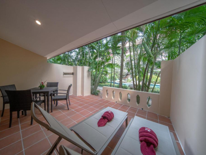 Oferind balcoane private cu vedere la piscină sau la vegetația tropicală, camerele luxoase sunt decorate in nuanțe intense de roșu și au mobilier fin din lemn. Acestea sunt dotate cu TV prin cablu, seif și frigider. Pentru confort, centrul de afaceri oferă Wi-Fi gratuit.