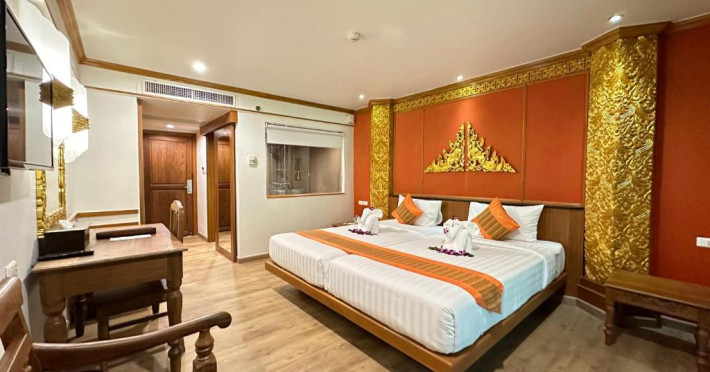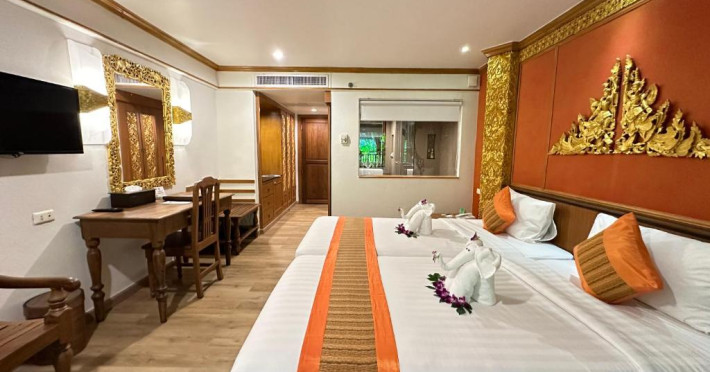 Oferind camere in stil thailandez situate in mijlocul unor terenuri amenajate, Kata Palm Resort are 2 piscine in aer liber care se intind pe toată proprietatea. Oferă parcare, transferuri la plajă și șezlonguri gratuite.