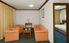 Apartament (62 mp.): Doua paturi single, Canapea extensibila, Vedere catre munti, Incalzire, Seif in camera, Balcon, televizor, telefon, radio, Cd player, Mini Bar, Podea acoperita cu mocheta, Baie cu cada si dus, Uscator de par, Cana electrica, Usa intermediara (+/-).