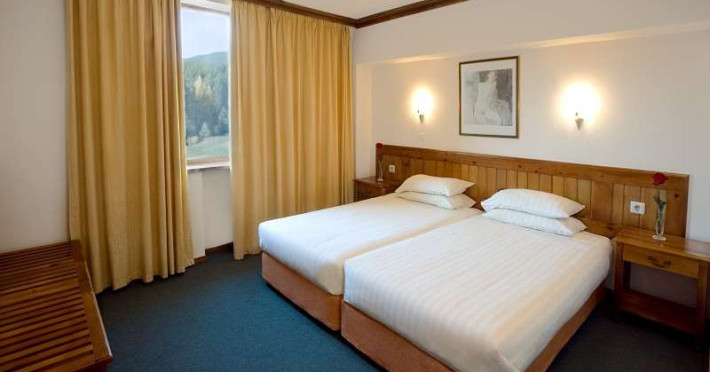 Camerele duble (26 mp.): doua paturi single, canapea extensibila (+/-), vedere catre munti, Incalzire, Seif in camera, balcon, televizor, radio, telefon, Cd player, Mini Bar, Podea acoperita cu mocheta, Baie cu cada sau dus, uscator de par.