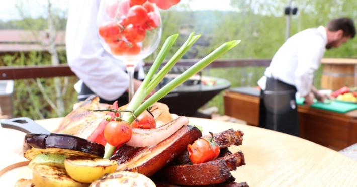 La Katarino Hotel & Spa oaspeții au la dispoziție un restaurant care servește mâncare în stil bufet și à la carte. Masa poate fi servită atât în interior, cît si în aer liber, pe terasă, în funcție de vreme. Oaspeţii pot avea diverse băuturi răcoritoare sau alcoolice la bar. În cadrul proprietății există și un snack bar care servește băuturi și gustări. Pentru cei cu anumite nevoi de nutriție, Katarino Hotel & Spa oferă meniuri pentru diete speciale.
