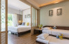 Facilitati camere: Camerele sunt mari si spatioase, cu decor artistic cuprinzand o zona de relaxare cu o canapea, un divan in aer liber si balcon privat cu vedere extraordinara. Camerele dispun de: aparat pentru prepararea ceaiului/cafelei, dus, seif, telefon, aer conditionat, uscator de par, balcon, halat de baie, frigider, articole de toaleta, DVD player, canale prin cablu, TV cu ecran plat, canapea, pardoseala de lemn sau parchet, serviciu de trezire, fierbator electric, uscator de haine, garderoba sau dulap, vedere la piscina, etc. **********