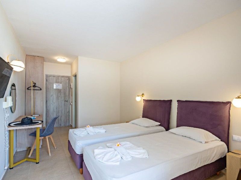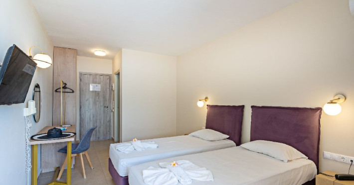 Facilitati hotel: restaurant, bar, piscina, piscina pentru copii, sezlonguri si umbrele, sezlonguri si umbrele (gratuite la piscina si contra cost pe plaja), seif centralizat in zona receptiei (contra cost), tenis de masa, volei pe plaja.