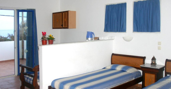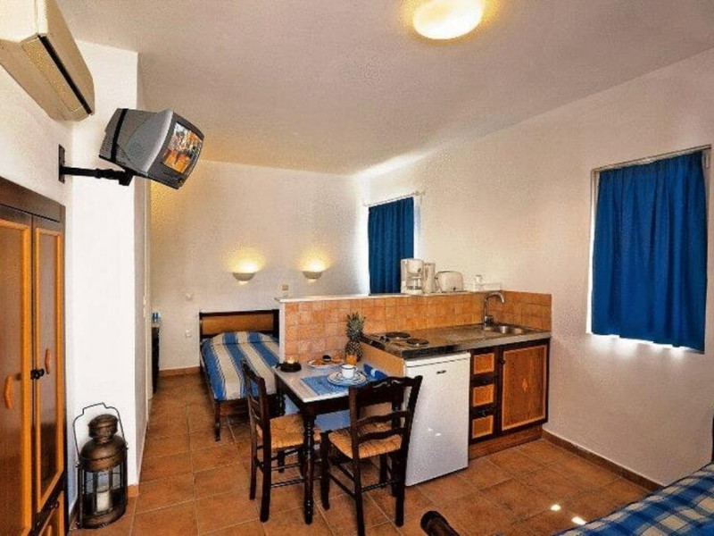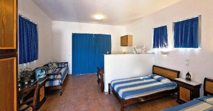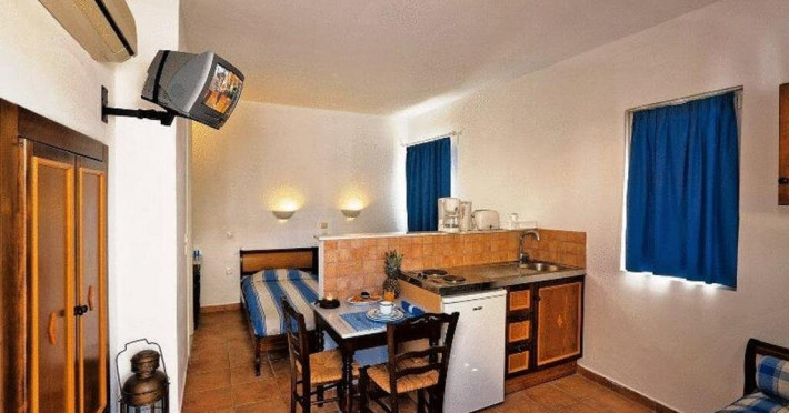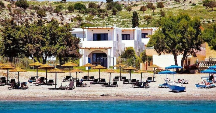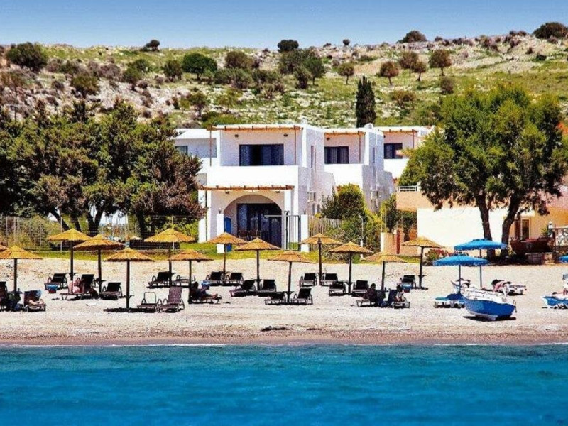 Localizare: pe plaja Lothiarika din Lardos, la aproximativ 5 km de Lindos si 55 km de aeroport. Sezlongurile si umbrelele pe plaja sunt contra cost.Dotari camere: Camerele au un aspect traditional grecesc si sunt dotate cu aer conditionat, televizor, mini bucatarie, frigider, facilitati pentru ceai/cafea, uscator de par, acces internet WiFi, seif.