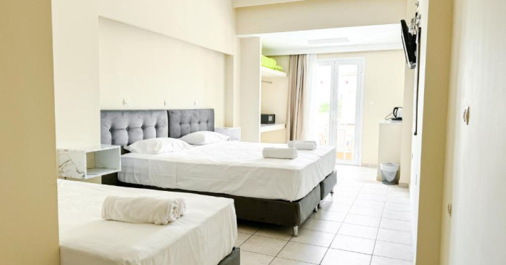 Hotelul Kavos Plaza este situat in Kavos, la 400 de metri de plaja Kavos, și oferă piscină in aer liber sezonieră și o grădină. Hotelul pune la dispoziție lounge comun și bar. Unitătile au vedere la piscină.