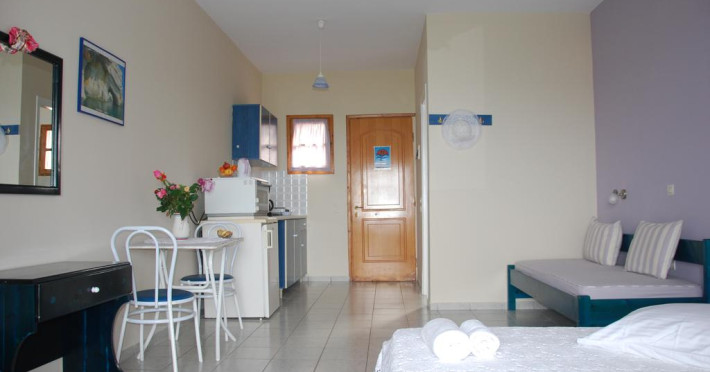 Camerele de la Kavos Psarou Studios & Apartments au în dotare aer condiționat și seif. Oaspeții au acces gratuit la serviciul Wi-fi în camere. Proprietatea oferă camere pentru familie cu o suprafață mai mare și un număr mai mare de paturi față de cele standard.