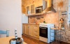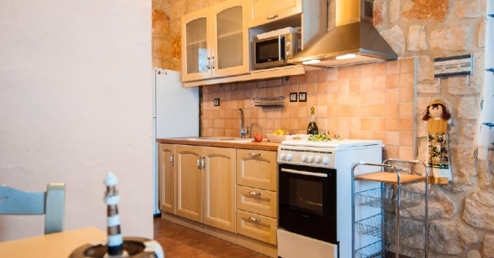 Bucatarie complet utilata: frigider, cuptor, fierbator, expresor, cuptor microunde, prajitor, hota.