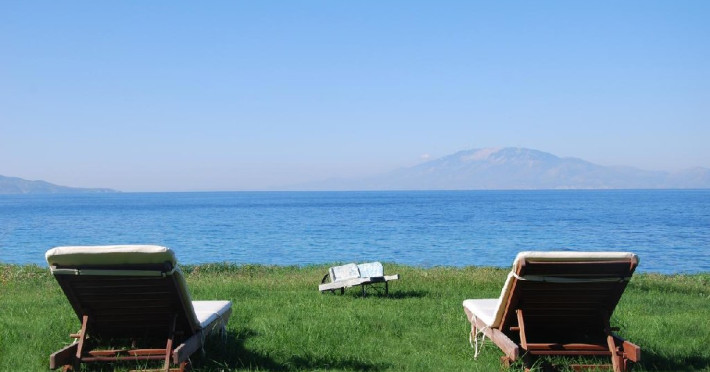 Locatie: Kavos Psarou Villas se afla intr-o zona frumoasa si linistita, la doar 100 m distanta de mare si plaja.Unitatea de cazare ofera peisaje superbe asupra marii Ionice si asupra insulei vecine Kefalonia.
