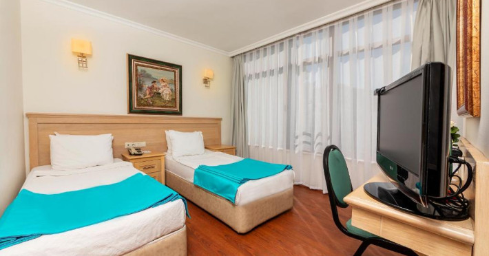 Hotelul a fost complet renovat in 2015, dispune de restaurante, piscina exterioara, piscina mica pentru copii, baie turceasca (hamam), sauna, centru de fitness, masaj, animatie, activitati sportive, biliard, kicker, muzica, tenis de masa, seri turcesti in zile speciale, bar la piscina, gradina, sala tv, internet, sporturi nautice, scufundari, parasailing, banana pe apa, jet ski, windsurfing, posibilitati de navigatie, plaja privata, sezlonguri si umbrela gratuite la plaja.