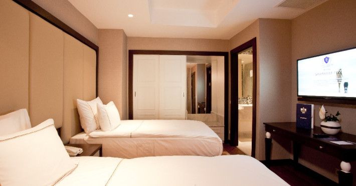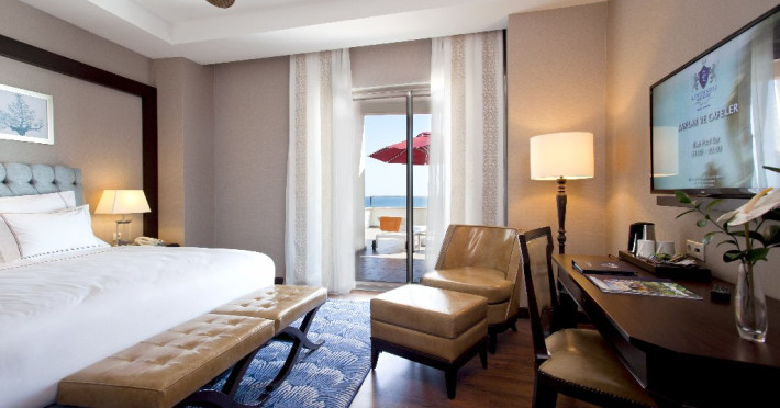 Facilitati camere: Hotelul Kaya Palazzo are disponibile: 219 camere superioare cu vedere la mare, sau piscina (max 3 persoane, 39mp), 5 camere superioare pentru persoanele cu dizabilitati cu land view (3 persoane, 30 mp), 30 camere superior swim up cu pool view (max 3 persoane, 39 mp), 155 suite cu vedere catre piscina sau mare ( max 4 persoane, 79 mp), 43 camere duplex family suite cu vedere catre piscina (max 6 persoane, 108 mp), 20 palazzo suite cu vedere catre mare sau piscina (4 persoane, 108 mp), 2 vila Verona (max 4 pers, 130 mp), 4 vila Verona (3 dormitoare, max 6 persoane, 265 mp), 3 vila venice (max 6 persoane, 138 mp) si 4 vile ducale (max 6 persoane, 175mp).
