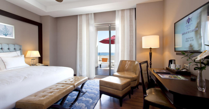 Kaya Palazzo Golf Resort dispune de plajă privată cu nisip și pietriș. Pe plajă există șezlonguri și umbrele de plajă gratuite.