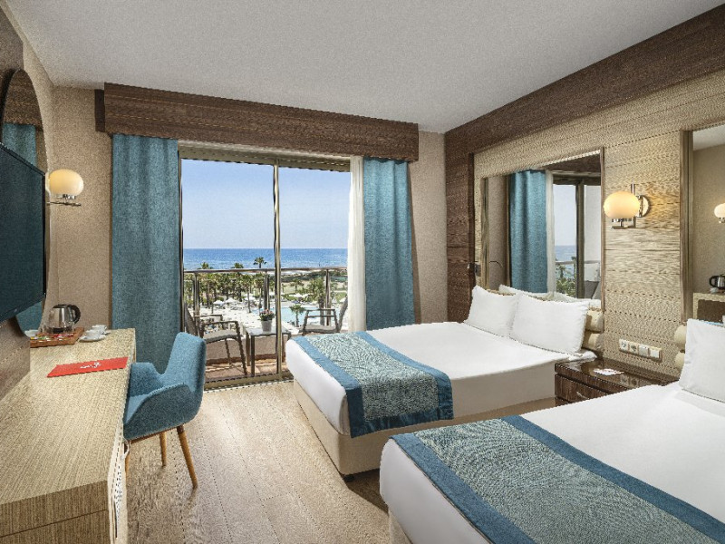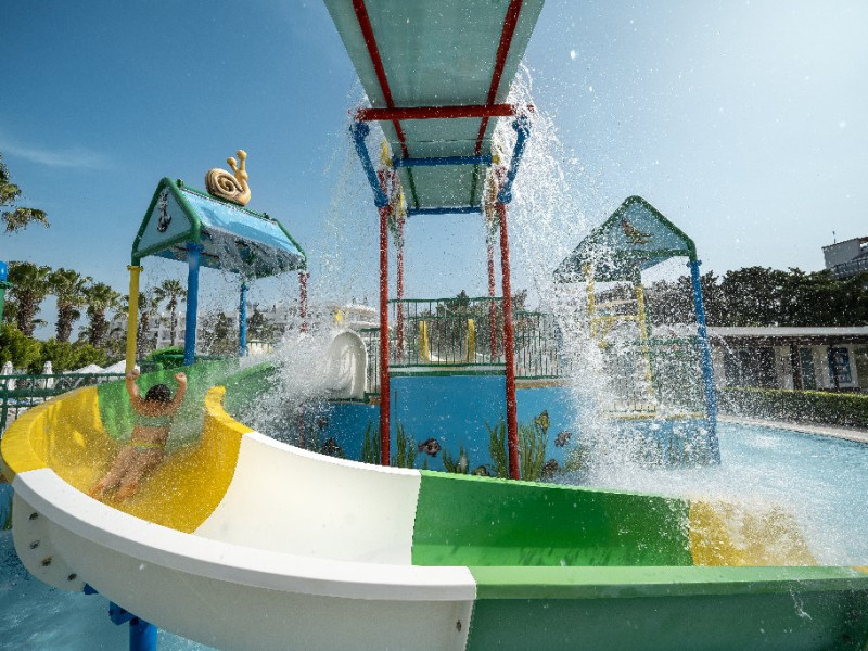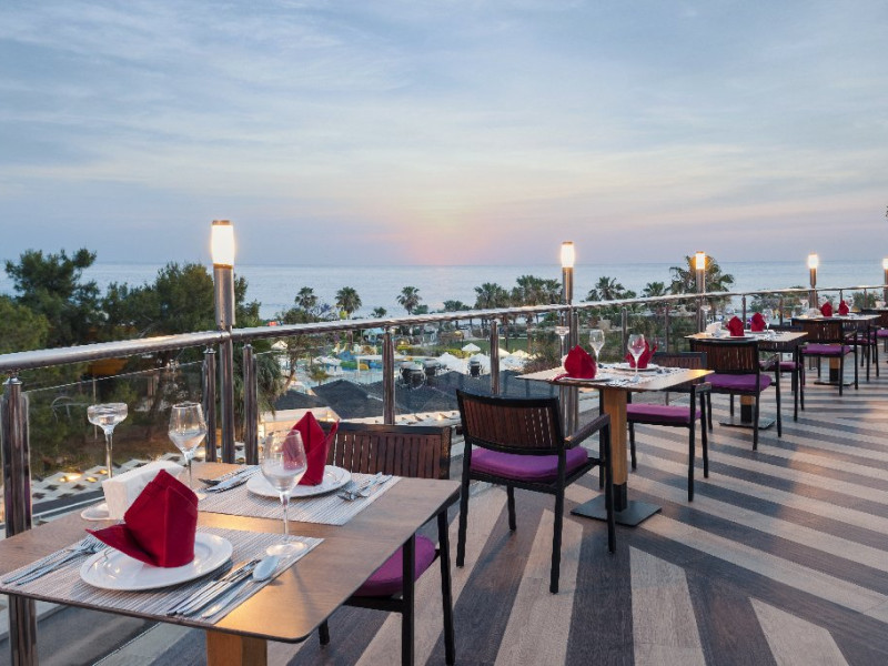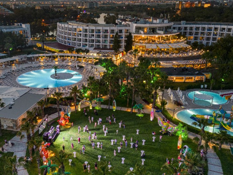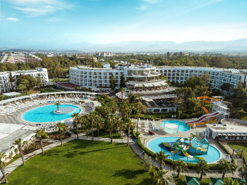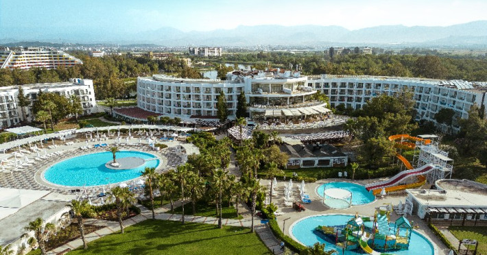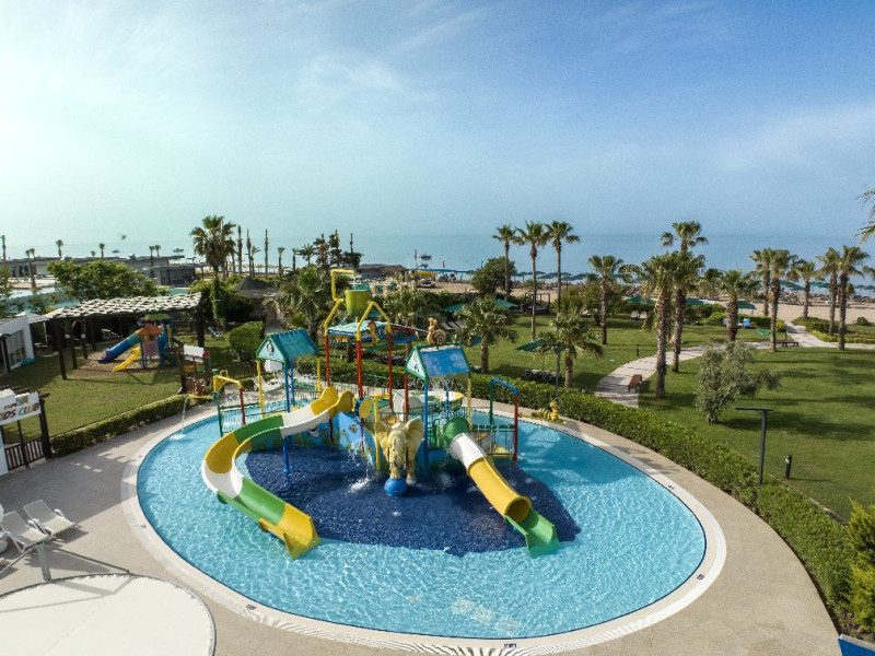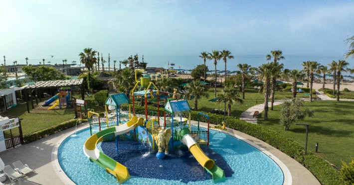 Facilitati hotel: Hotelul ofera oaspetilor sai urmatoarele facilitati: restaurant principal, 3 restaurante a la carte (italian, turcesc, barbeque), 4 baruri, cafena, piscine interioare si exterioare pentru adulti si copii, 3 tobogane, amfiteatru, muzica live, polo, minifotbal, sah, lectii de gatit, boccia, miniclub, minidisco, club de tenis, jocuri de carti, sala de conferinta, internet wi-fi in lobby, fitness, baie turceasca, sauna, camera TV, minigolf, voley pe plaja, gimnastica si aerobic, darts, baschet.
