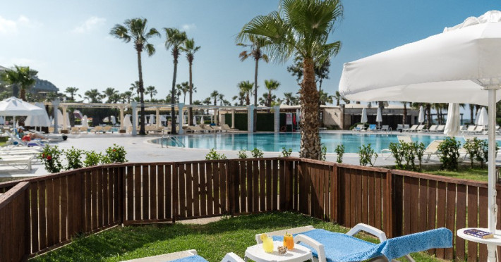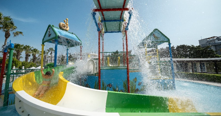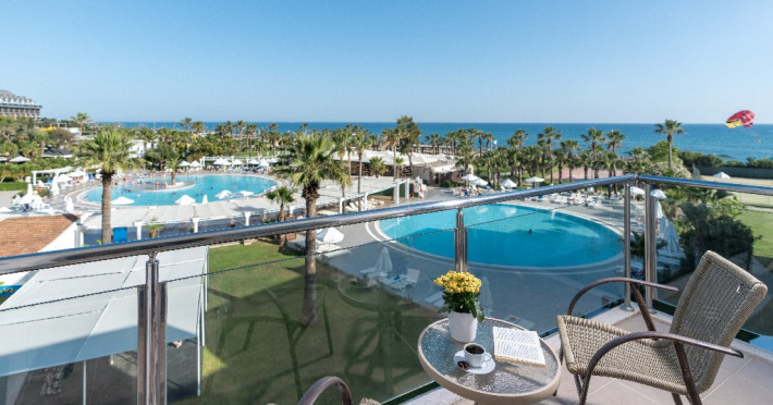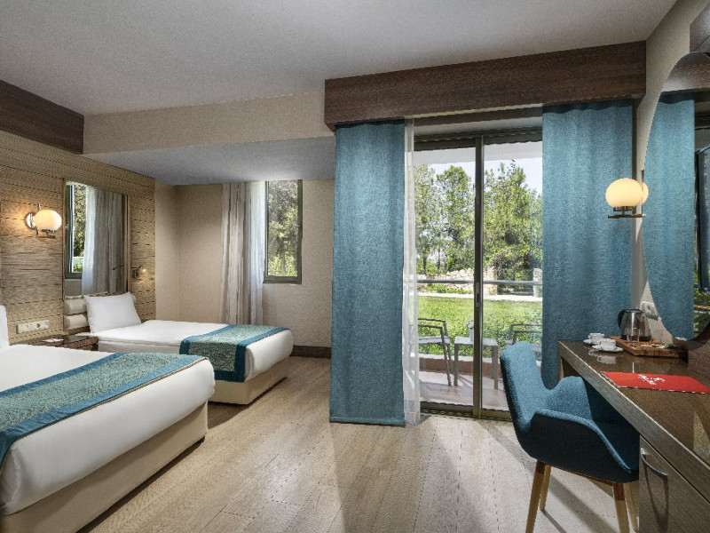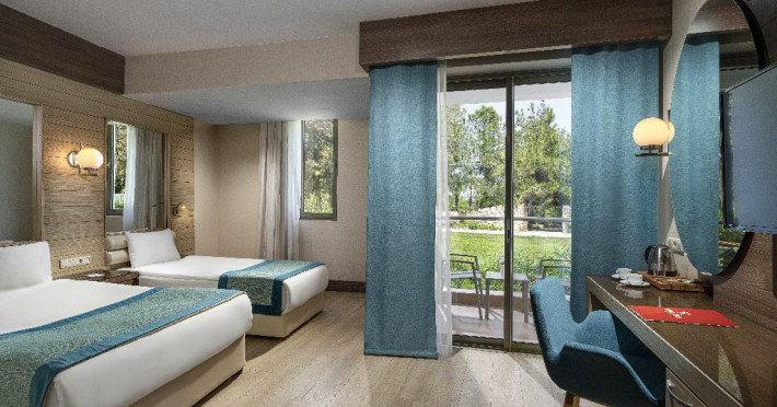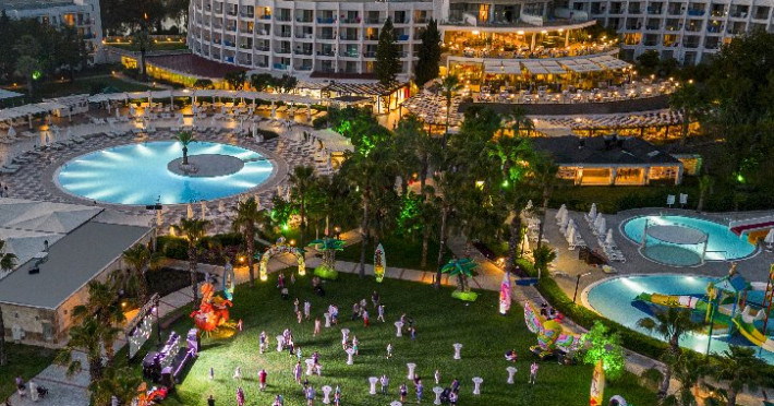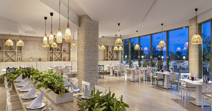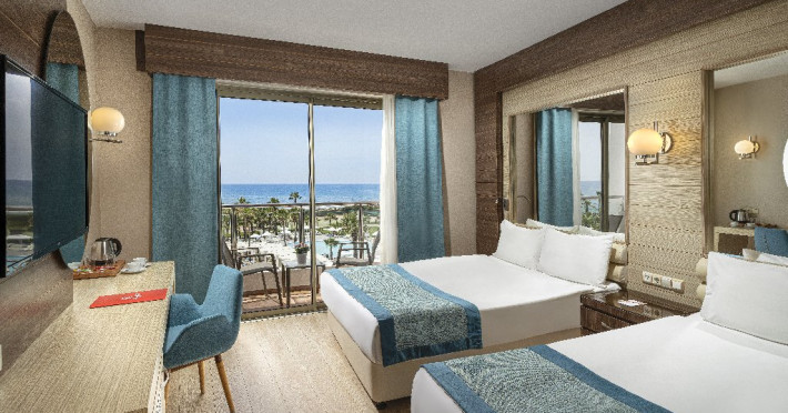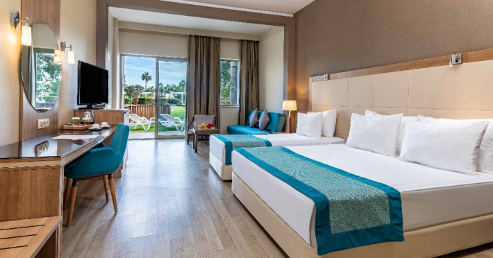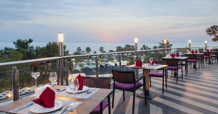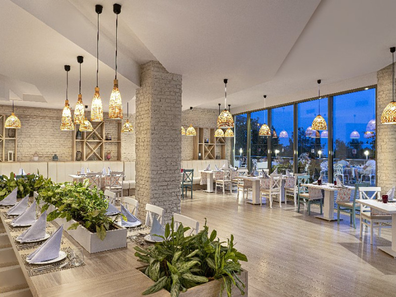 Facilitati hotel: Hotelul ofera oaspetilor sai urmatoarele facilitati: restaurant principal, 3 restaurante a la carte (italian, turcesc, barbeque), 4 baruri, cafena, piscine interioare si exterioare pentru adulti si copii, 3 tobogane, amfiteatru, muzica live, polo, minifotbal, sah, lectii de gatit, boccia, miniclub, minidisco, club de tenis, jocuri de carti, sala de conferinta, internet wi-fi in lobby, fitness, baie turceasca, sauna, camera TV, minigolf, voley pe plaja, gimnastica si aerobic, darts, baschet.