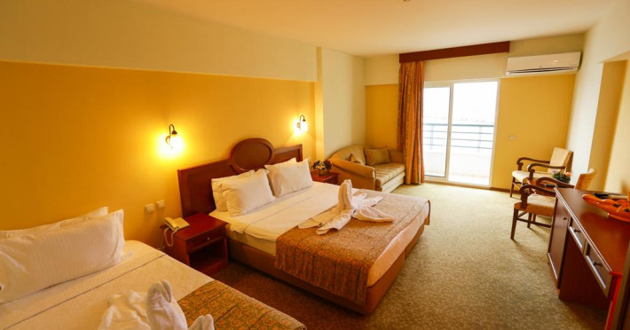 Unele camere au balcon cu vedere la mare sau la grădină. În camere există baie cu cadă sau duș ce are în dotare foehn și articole de toaletă gratuite. Fiecare cameră dispune de minibar și cană-fierbător. Oaspeții pot solicita serviciul de room service pentru a servi masa sau diverse băuturi. Camerele luminoase de la Kayhan Bey Hotel sunt dotate cu mochetă, aer condiționat, Tv și seif. Oaspeții au acces gratuit la serviciul Wi-fi în camere. Curățenia in cameră se face zilnic. Toate camerele spațioase de la Kayhan Bey Hotel au zonă de relaxare cu canapea, ceea ce oferă un plus de confort. Proprietatea oferă camere pentru familie cu o suprafață mai mare și un număr mai mare de paturi față de cele standard. Se pot rezerva de asemenea camere pentru nefumători.