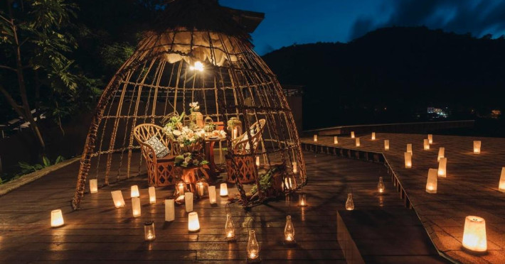 Restaurantul complexului este deschis pe tot parcursul zilei și servește specialități thailandeze și internaționale, preparate cu ingrediente proaspete și de calitate. La sosire, oaspeții pot solicita micul dejun in cameră și meniuri pentru diete speciale.
