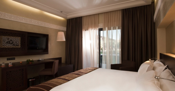 The hotel Kenzi Club Agdal Medina is equipped with Wi-Fi, a hairdresser, a jacuzzi as well as a TV lounge. In the outdoor area of the property you will find a garden as well as a heated pool (open all year), where sun umbrellas are available for free. For children there is also a children's pool. Furthermore, you can relax outdoors on a terrace. Inside the hotel you can use an indoor pool. For your entertainment, the hotel offers a library/reading room and a disco. You can store your luggage in the hotel's storage room. If you want to explore the holiday region, you can use the car rental service close to the hotel (extra fee). The hotel requires that all guests pay a deposit upon arrival. Due to its barrier-free facilities , such as wheelchair-accessible bathrooms, the hotel is also suitable for wheelchair users. Catering Breakfast is offered from the buffet. Lunch and dinner are also served from the buffet. In the gastronomic area also vegetarian and gluten-free dishes are served. Sports & Leisure If you don`t want to miss out on training with a ball during your holidays, you`ll find the chance to play football or basketball. There is also the option to play billiards. With table tennis and volleyball various other sports offer a lot of variety on holiday. For cyclists there is a bicycle rental. A sauna (extra fee) awaits you in the spa. Let yourself be pampered in the Hamam (extra fee). Spend some healthy and relaxing hours with hot stone therapy. Additional information The hotel has a total of 250 rooms.The hotel Kenzi Club Agdal Medina is equipped with Wi-Fi, a hairdresser, a jacuzzi as well as a TV lounge. In the outdoor area of the property you will find a garden as well as a heated pool (open all year), where sun umbrellas are available for free. For children there is also a children's pool. Furthermore, you can relax outdoors on a terrace. Inside the hotel you can use an indoor pool. For your entertainment, the hotel offers a library/reading room and a disco. You can store your luggage in the hotel's storage room. If you want to explore the holiday region, you can use the car rental service close to the hotel (extra fee). The hotel requires that all guests pay a deposit upon arrival. Due to its barrier-free facilities , such as wheelchair-accessible bathrooms, the hotel is also suitable for wheelchair users. Catering Breakfast is offered from the buffet. Lunch and dinner are also served from the buffet. In the gastronomic area also vegetarian and gluten-free dishes are served. Sports & Leisure If you don`t want to miss out on training with a ball during your holidays, you`ll find the chance to play football or basketball. There is also the option to play billiards. With table tennis and volleyball various other sports offer a lot of variety on holiday. For cyclists there is a bicycle rental. A sauna (extra fee) awaits you in the spa. Let yourself be pampered in the Hamam (extra fee). Spend some healthy and relaxing hours with hot stone therapy. Additional information The hotel has a total of 250 rooms.
