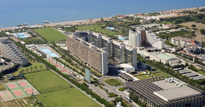 Facilitati hotel: Hotelul dispune de restaurant principal, meniu dietetic, 3 restaurante a la carte (latin, asiatic, mediteranean), 7 baruri (unul este deschis 24 ore), 3 piscine exterioare, piscina interioara, 4 tobogane, cabinet medical, centru spa, coafor, lant de magazine, spalatorie, 15 sali de conferinte si 2 terenuri de fotbal.