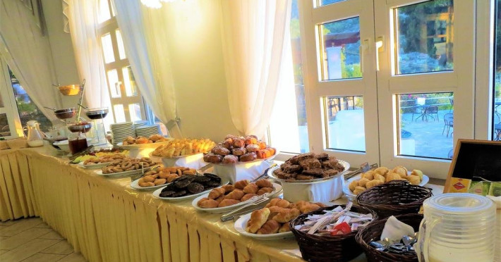 Aceasta proprietate este la 3 minute de mers pe jos de plaja. Complexul este compus din sase cladiri construite in stil traditional, amenajate amfiteatric printre gradinile frumoase cu trandafiri, maslini si copaci de chiparos, impreuna cu privelistea minunata spre mare, ofera un cadru ideal de vacanta.Localizare: Este situat pe coasta de est a insulei, in golful Kerveli. Orasul Samos este la doar 10 km distanta iar aeroportul la 18 km.Facilitati camere:Hotelul dispune de 62 de camere luminoase si spatioase complet echipate cu facilitati moderne: baie proprie cu cada sau dus, uscator de par, televizor, aer conditionat (functioneaza in perioada 01.07 - 31.08), frigider (contra cost: 3 Euro/ zi; in camerele superior este gratuit), seif (1 Euro/ zi; in camerele superior este inclus) si balcon sau terasa care ofera vedere la mare sau la gradina. Camerele superior ofera in plus halate de baie si prosoape de plaja.