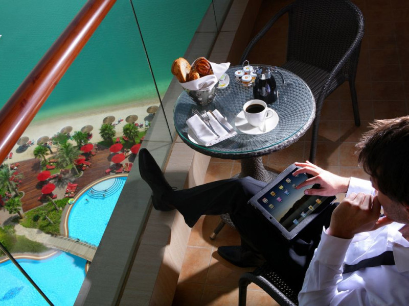 Feel at home in the 443rooms and suites with breath-taking views of the sea or Presidential Palace.With a contemporary design that maximizes space and comfort and reflects thevalues of modern Arabian culture in an alcohol-free environment.
