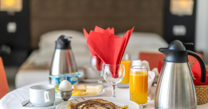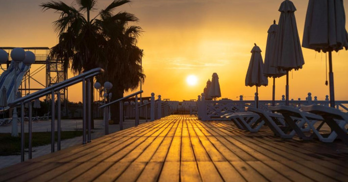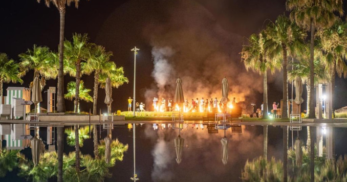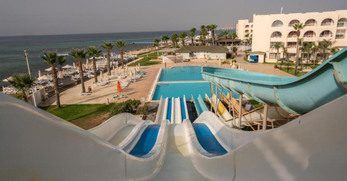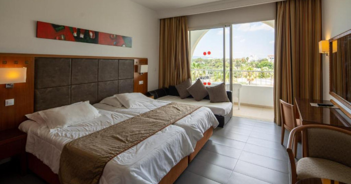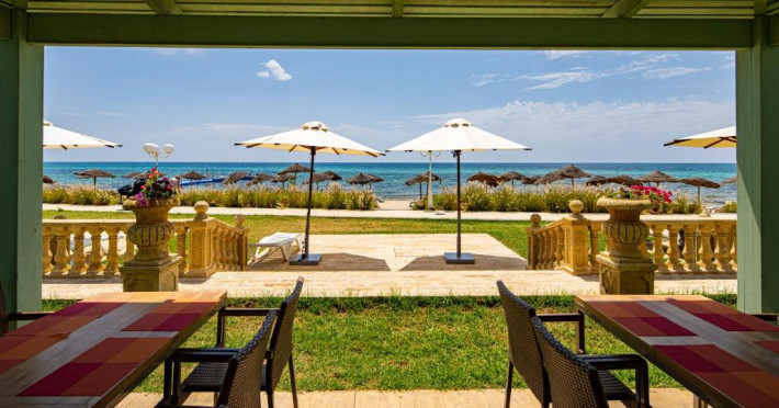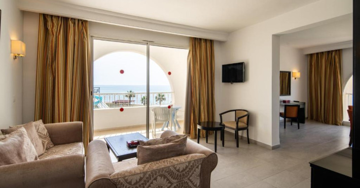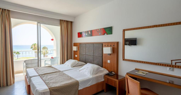 Camerele sunt decorate in stil mediteranean și beneficiază de balcoane sau terase cu vedere spre mare sau grădină. Plaja privată a hotelului este amenajată cu șezlonguri și umbrele, iar programele de animație și clubul pentru copii completează experiența de vacanță.