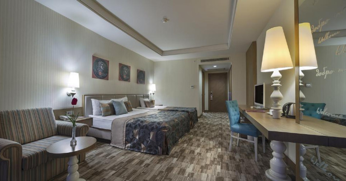 Camerele luminoase de la Kilikya Palace Goynuk sunt dotate cu mochetă, aer condiționat, Tv cu canale prin satelit și seif. Camerele au balcon cu masă și scaune unde pot fi petrecute momente de relaxare. În camere există baie cu cadă sau duș ce are în dotare foehn și articole de toaletă gratuite. Fiecare cameră dispune de minibar și cană-fierbător. Oaspeții pot solicita serviciul de room service pentru a servi masa sau diverse băuturi. Oaspeții au acces gratuit la serviciul Wi-fi în camere. Curățenia in cameră se face zilnic. Proprietatea oferă camere pentru familie cu o suprafață mai mare și un număr mai mare de paturi față de cele standard.