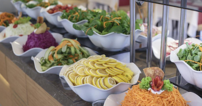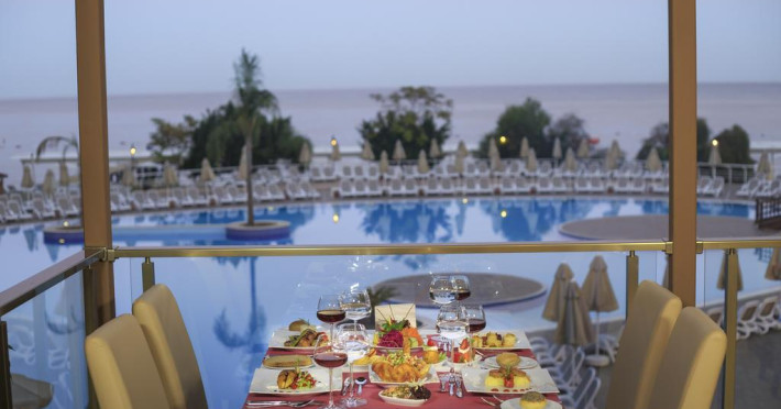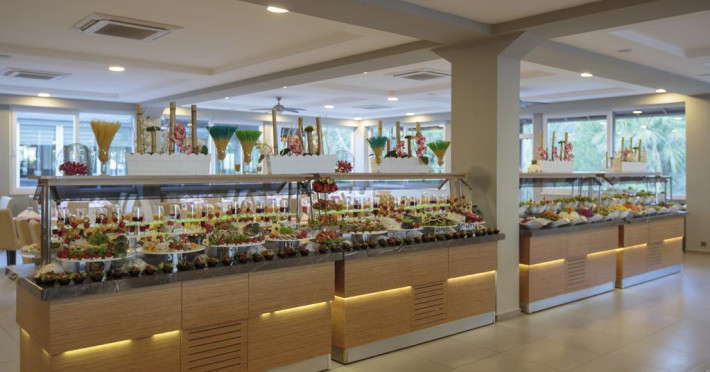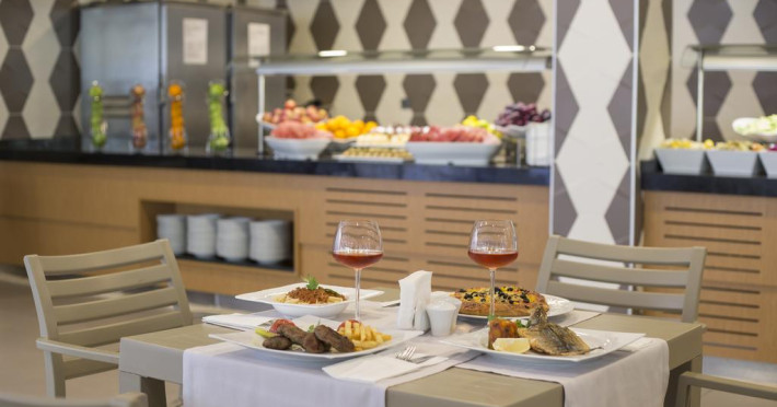 La Kimeros Park Holiday Village oaspeții au la dispoziție 2 restaurante unde pot savura mâncăruri delicioase, în stil bufet sau à la carte. Preparate din bucătăria internațională și preparate pescărești așteaptă să fie degustate în fiecare zi la micul dejun, prânz și cină. Masa poate fi servită atât în interior, cît si în aer liber, pe terasă, în funcție de vreme. 5 baruri sunt disponibile cu o ofertă variată de băuturi răcoritoare și alcoolice. Pentru cei cu anumite nevoi de nutriție, Kimeros Park Holiday Village oferă meniuri pentru diete speciale.