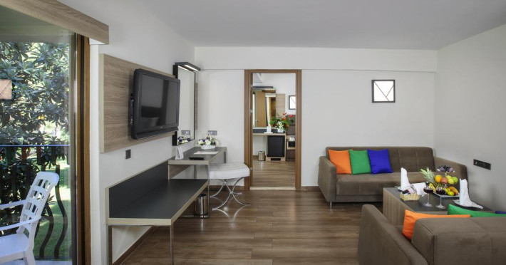 Sunt disponibile 442 camere. În camere există baie cu cadă sau duș ce are în dotare foehn și articole de toaletă gratuite. Camerele confortabile de la Kimeros Park Holiday Village au pardoseală de gresie/ marmură, aer condiționat, Tv cu canale prin satelit și seif. Fiecare cameră dispune de minibar. Unele camere au balcon cu vedere la mare sau la grădină. Oaspeții au acces gratuit la serviciul Wi-fi în camere. Curățenia in cameră se face zilnic. Proprietatea oferă camere pentru familie cu o suprafață mai mare și un număr mai mare de paturi față de cele standard. Se pot rezerva de asemenea camere pentru nefumători.