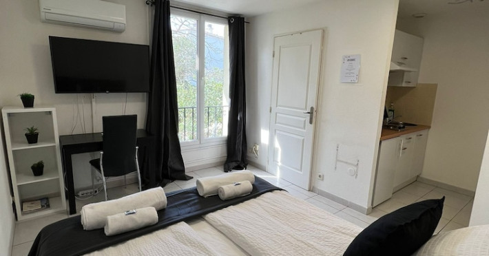 In Cannes (Prado - Republique). With a stay at Kimi Résidence in Cannes (Prado - Republique), youll be steps from Carnot Boulevard and a 3-minute drive from Gambetta Market. This aparthotel is 1.2 mi (1.9 km) from Musée Bonnard and 1.2 mi (2 km) from Cannes Hospital. Make yourself at home in one of the 15 guestrooms, featuring kitchenettes with refrigerators and stovetops. Complimentary wireless internet access is available to keep you connected. Conveniences include desks and coffee/tea makers, and you can also request irons/ironing boards. Wrap up your day with a drink at the bar/lounge. Take advantage of recreation opportunities such as bicycles to rent or take in the view from a terrace and a garden. Additional amenities at this aparthotel include complimentary wireless internet access, a picnic area, and barbecue grills.Datorita dinamicitatii domeniului disponibilitatea ofertelor se modifica de la un moment la altul. De aceea ofertele sunt valabile in limita locurilor disponibile. Agentia nu este responsabila pentru eventualele neconcordante care pot aparea intre informatiile privind tarifele si alte detalii din site si informatiile primite in agentie. In aceste cazuri vor avea prioritate, intotdeauna, informatiile primite in agentie.