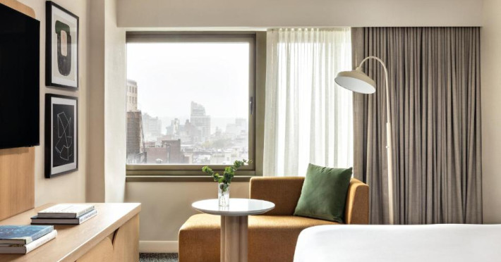 Situat ideal, la o stradă de Times Square și de o stație de metrou, acest hotel din Manhattan oferă oaspeților Wi-Fi gratuit și seifuri in cameră.