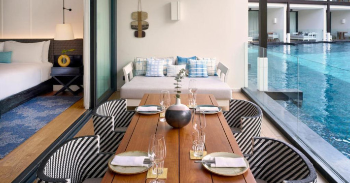 La proprietate este disponibilă in fiecare zi un mic dejun tip bufet, american sau asiatic. Kimpton Kitalay Samui, an IHG Hotel are un restaurant care servește mancăruri din bucătăria mediteraneană, fructe de mare și spaniolă. La cerere, sunt disponibile și preparate vegetariene, fără lactate și vegane.